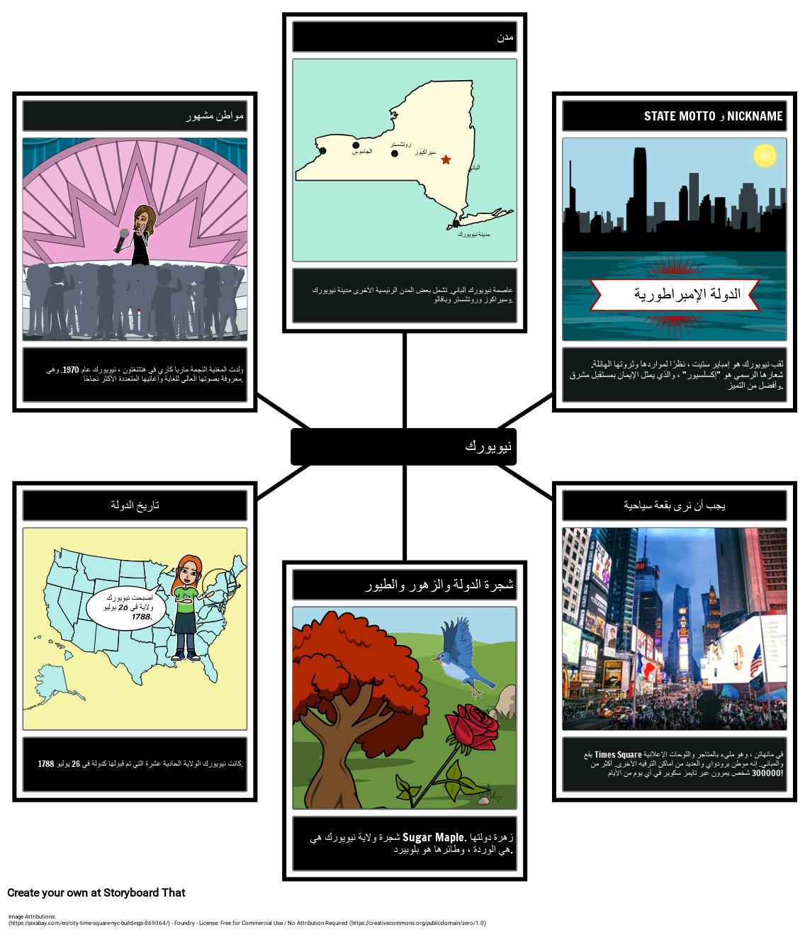 استخدم خريطة العنكبوت لإنشاء ملف تعريف ولاية لولاية نيويورك وتمييز أشياء مثل العواصم والمعالم والمزيد!