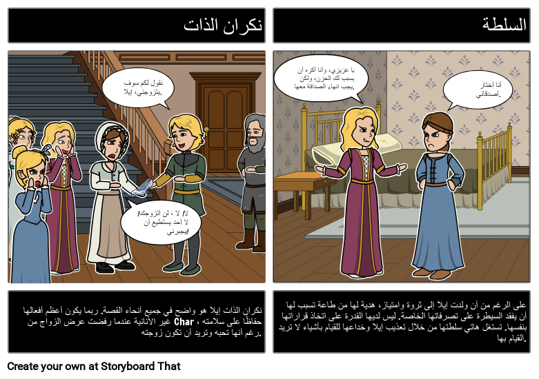 نكران الذات إيلا هو واضح في جميع أنحاء القصة. ربما يكون أعظم أفعالها غير الأنانية عندما رفضت عرض الزواج من Char حفاظًا على سلامته ، رغم أنها تحبه وتريد أن تكون زوجته.
