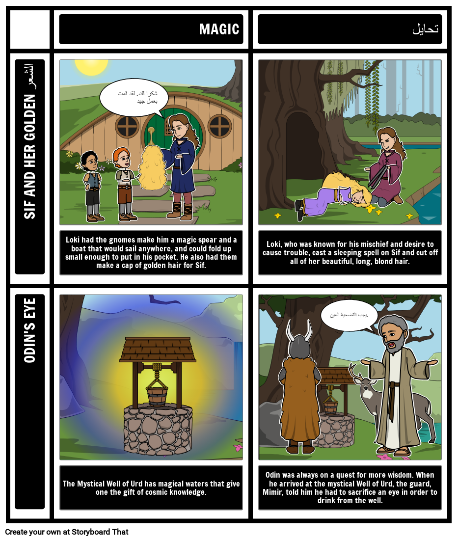 Loki had the gnomes make him a magic spear and a boat that would sail anywhere, and could fold up small enough to put in his pocket. He also had them make a cap of golden hair for Sif.
