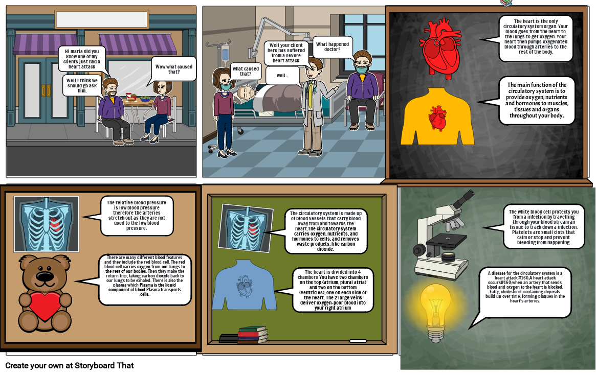 A disease for the circulatory system is a heart attack.#160;A heart attack occurs#160;when an artery that sends blood and oxygen to the heart is blocked. Fatty, cholesterol-containing deposits build up over time, forming plaques in the heart's arteries.