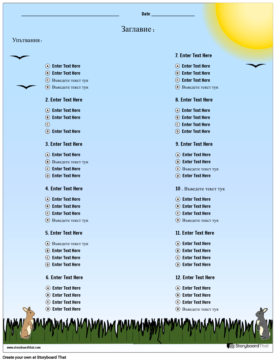 Тема на открито с 12 въпроса с избор