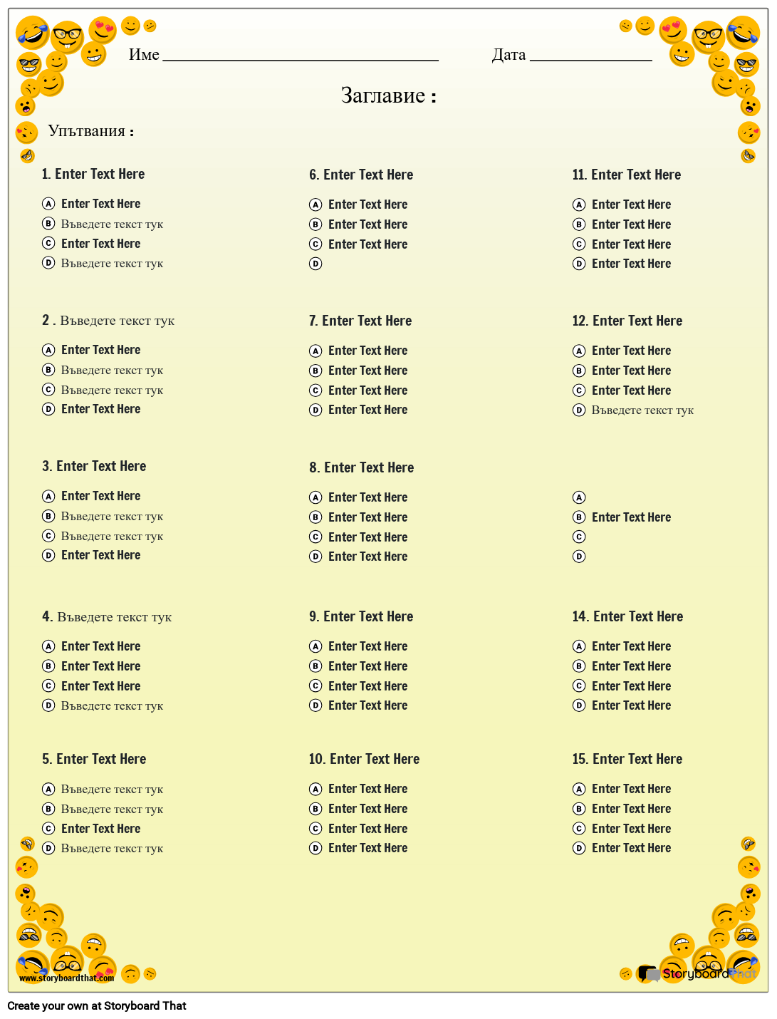 Тема за усмихнато лице с 15 въпроса с множество възможности за избор