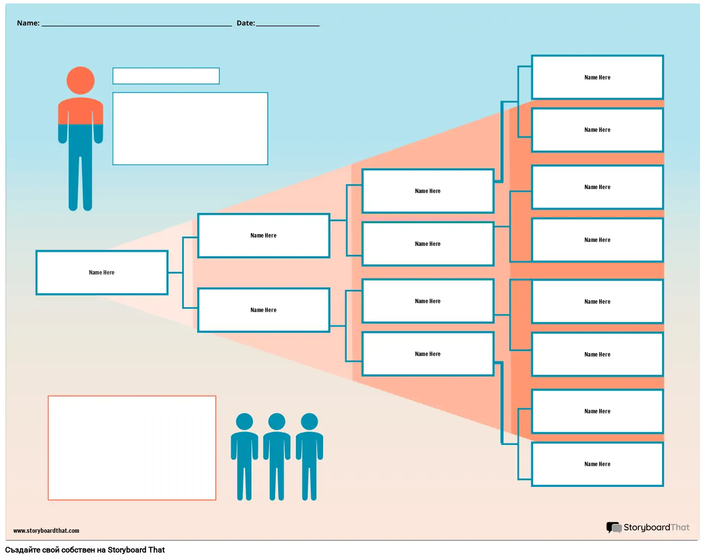 Синьо и светлооранжево тематично пейзажно родословно дърво.