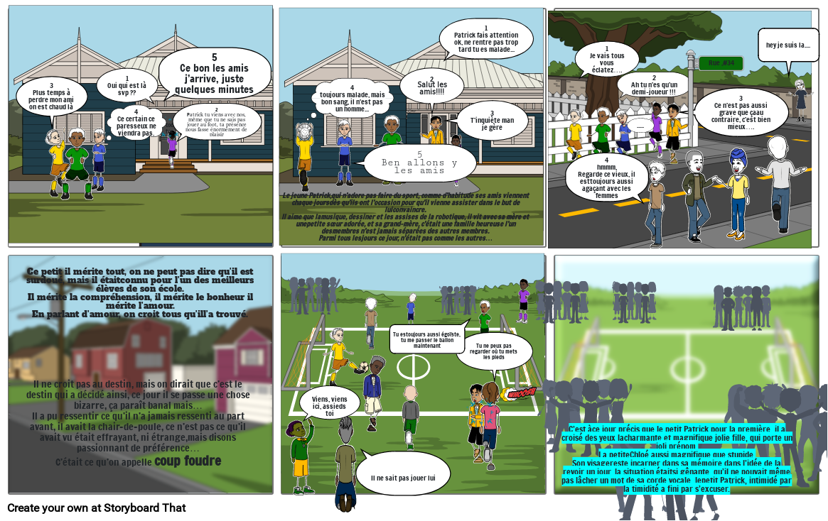 Le jeune Patrick,qui n’adore pas faire du sport, comme d’habitude ses amis viennent chaque joursdès qu’ils ont l’occasion pour qu’il vienne assister dans le but de luiconvaincre.Il aime que lamusique, dessiner et les assises de la robotique, il vit avec sa mère et unepetite sœur adorée, et sa grand-mère, c’était une famille heureuse l’un desmembres n’est jamais séparées des autres membres.Parmi tous lesjours ce jour, n’était pas comme les autres…