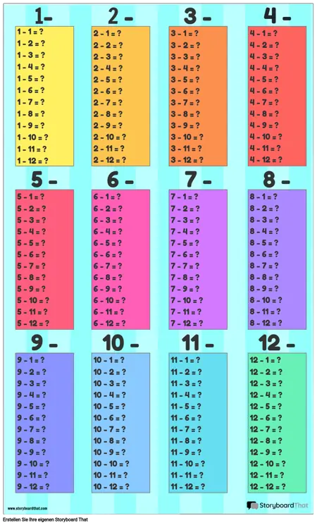 Erstellen Sie benutzerdefinierte Poster mit Subtraktionstabellen für Ihr Klassenzimmer