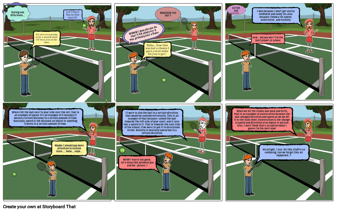 When I hit the ball over to your side over the net, that is an example of speed. It's an example of it because it moved a certain distance in a certain amount of time. Basically, speed is the distance an object or anything travels in a certain amount of time.