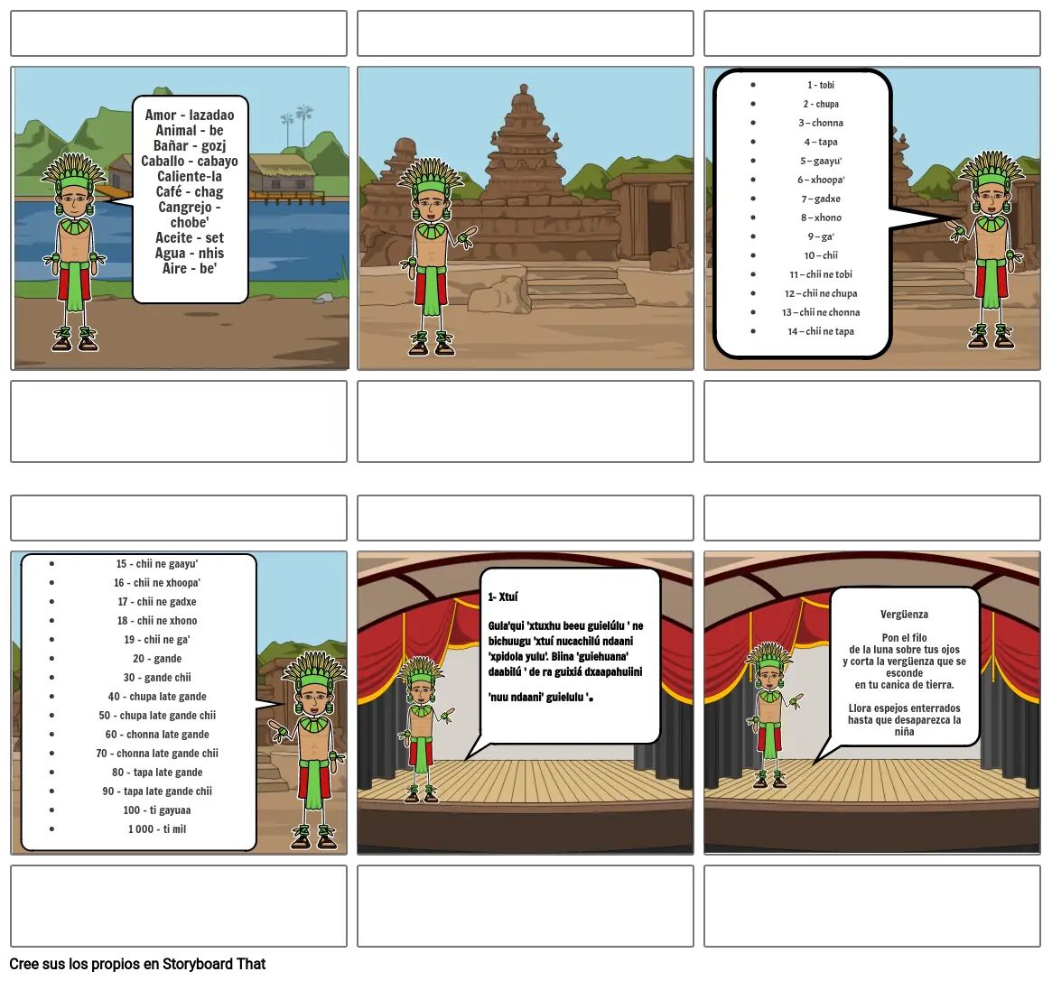 1 – tobi2 – chupa3 – chonna4 – tapa5 – gaayu’6 – xhoopa’7 – gadxe8 – xhono9 – ga’10 – chii11 – chii ne tobi12 – chii ne chupa13 – chii ne chonna14 – chii ne tapa