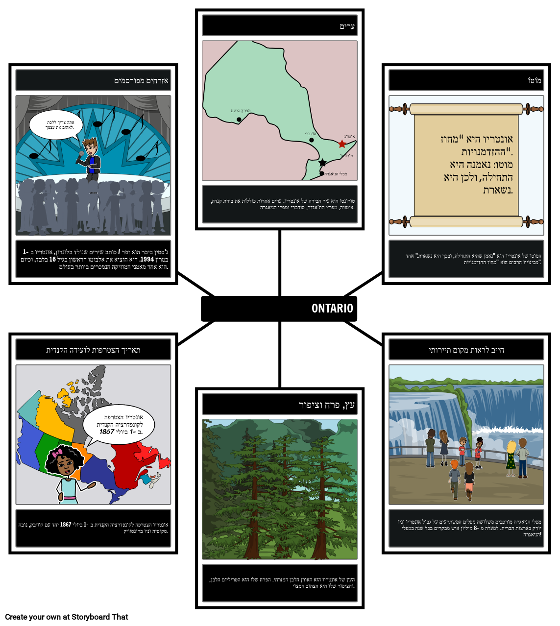 צור מפת עכביש שממחישה עובדות ומידע מהנים שונים על אונטריו או מחוז קנדי אחר.