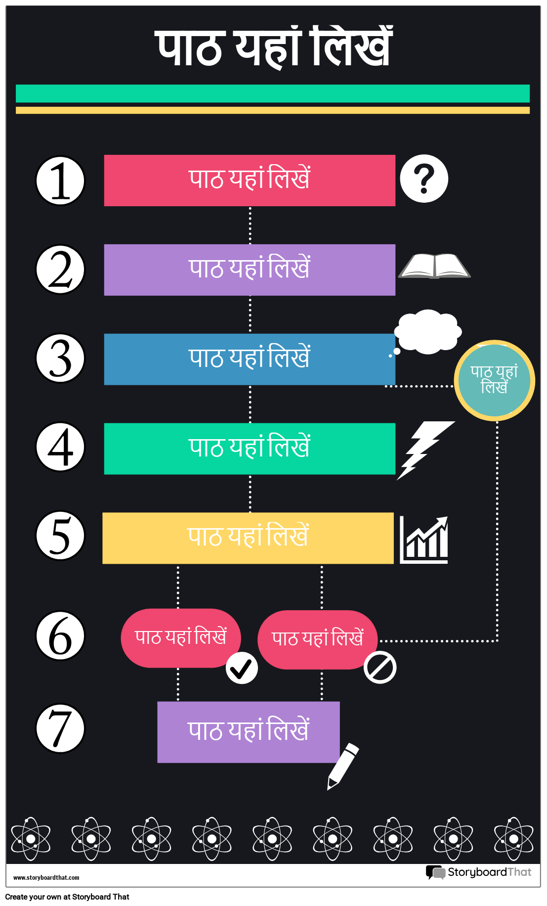 एक फ़्लो चार्ट इन्फोग्राफ़िक बनाएँ | फ़्लोचार्ट इंफ़ोग्राफ़िक्स कुछ करने की प्रक्रियाओं, समस्याओं को हल करने, और बहुत कुछ दिखाने के लिए बढ़िया हैं!