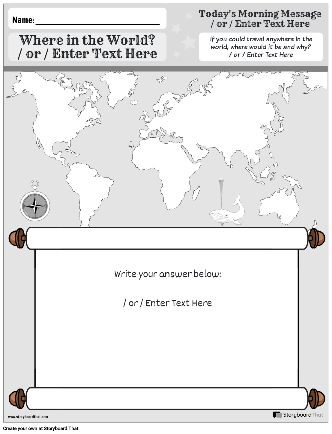 • Where in the World? / or / Enter Text Here If you could travel anywhere in the world, where would it be and why? / or / Enter Text Here