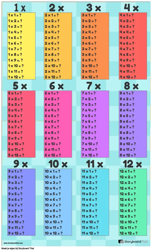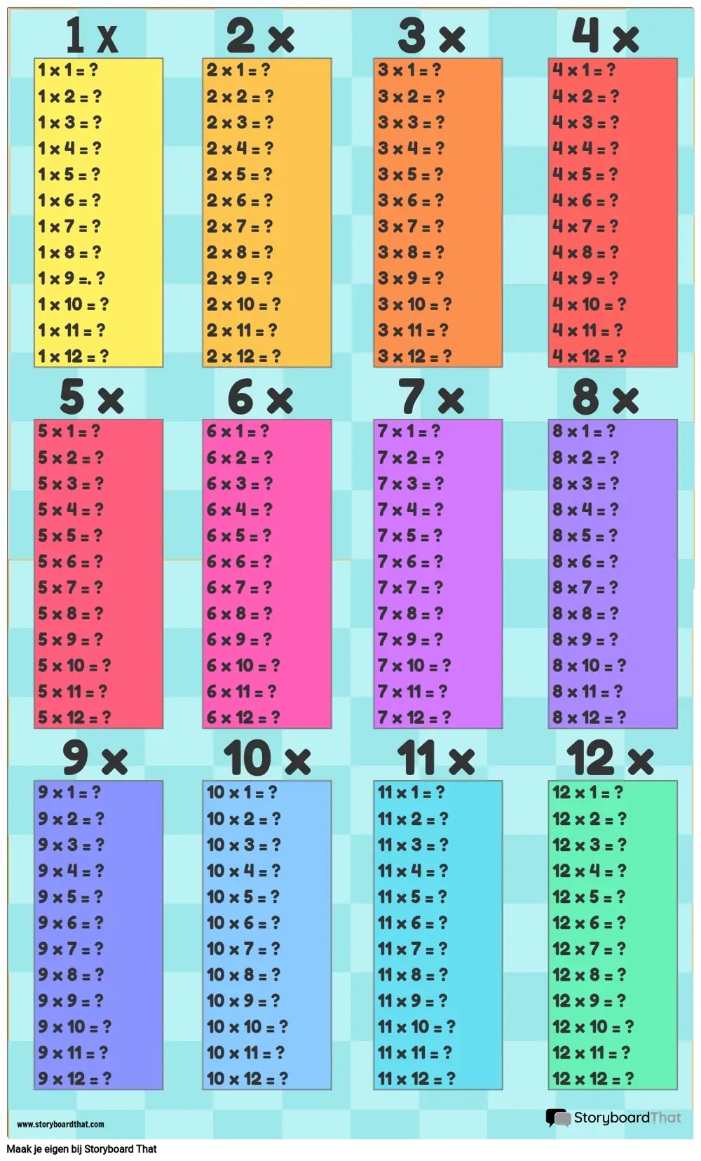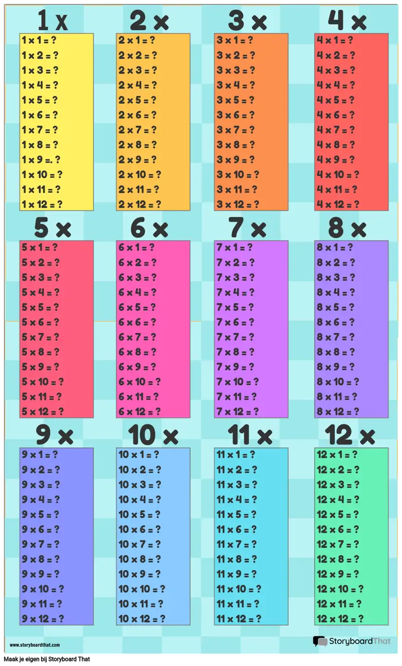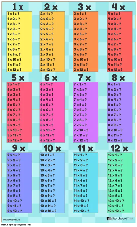 Maak op maat gemaakte posters van de tafel van vermenigvuldiging voor je klas