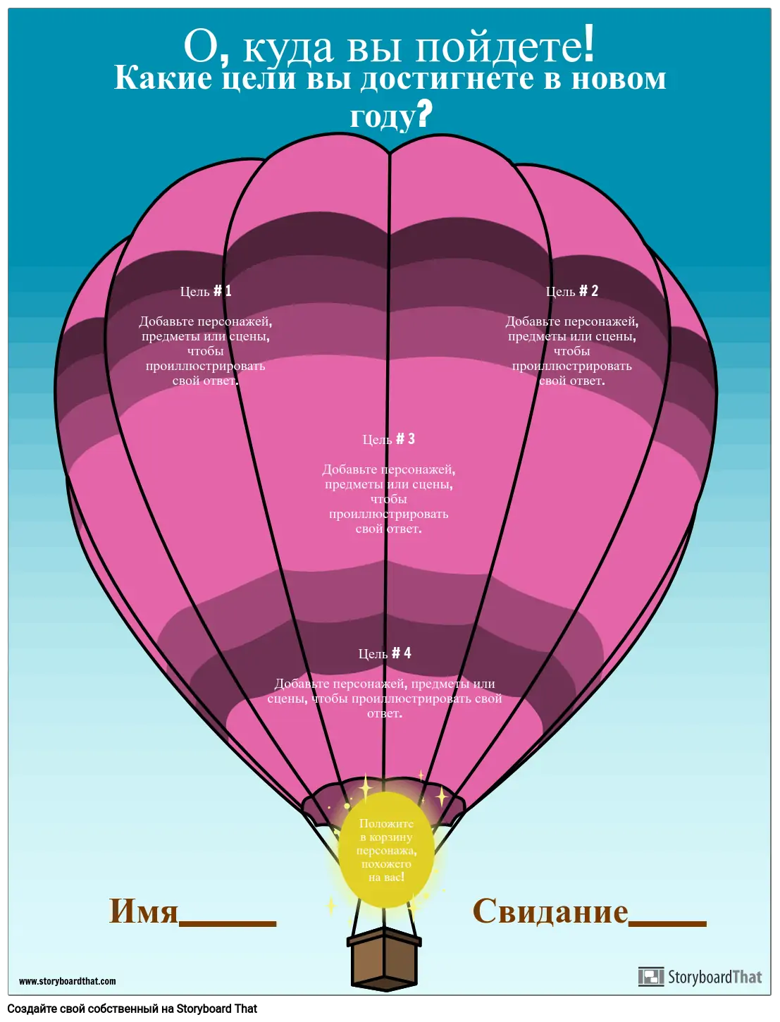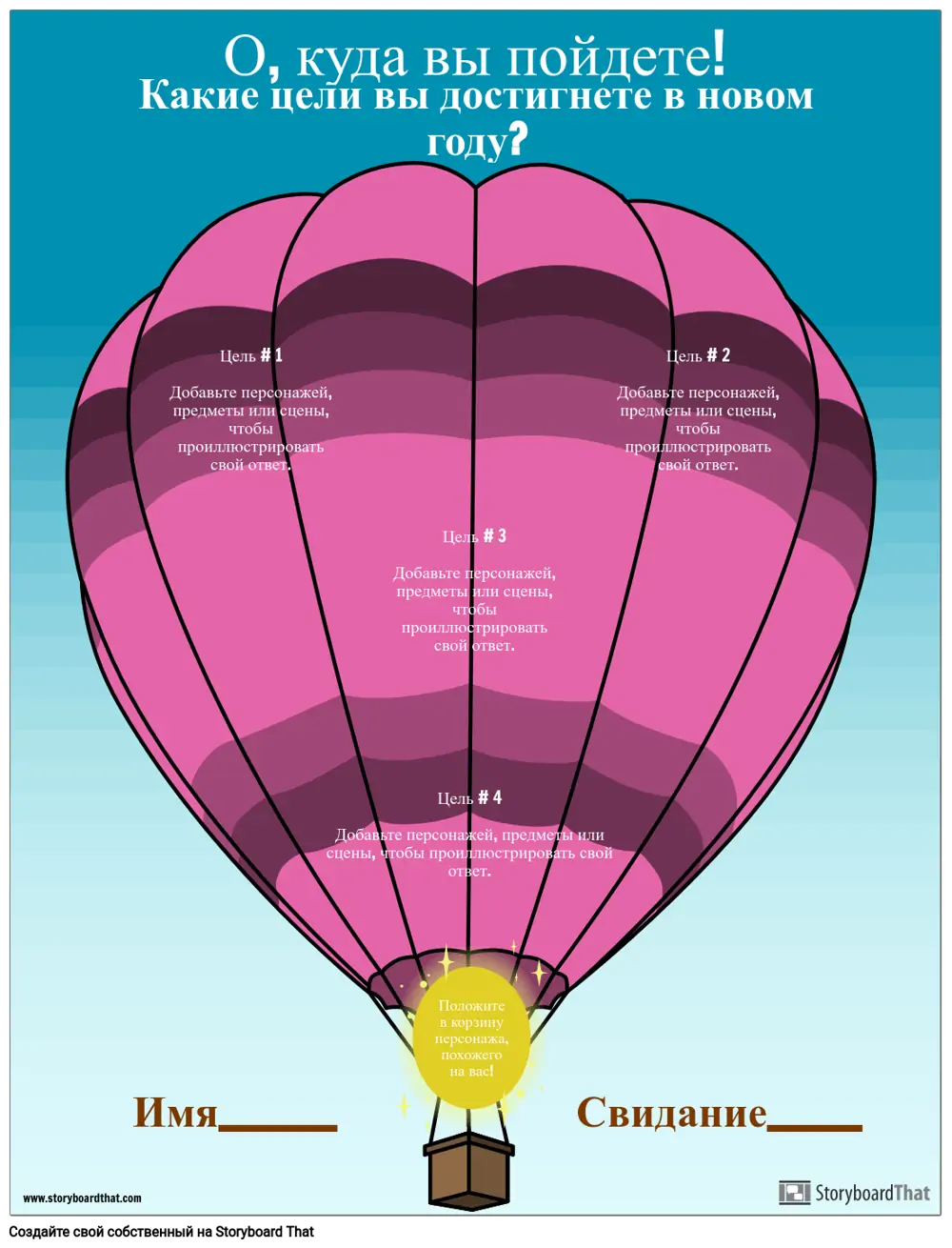 Студенты могут написать и проиллюстрировать свои цели на новый год, а также добавить персонажа, похожего на них!