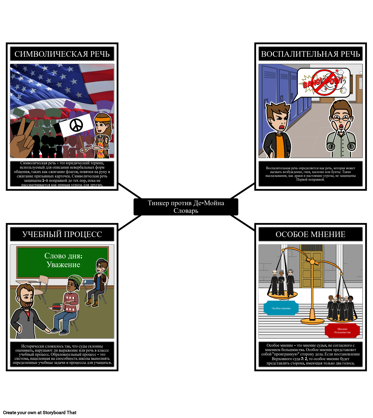 Воспалительная речь определяется как речь, которая может вызвать возбуждение, гнев, насилие или бунты. Такие высказывания, как драки и настоящие угрозы, не защищены Первой поправкой.