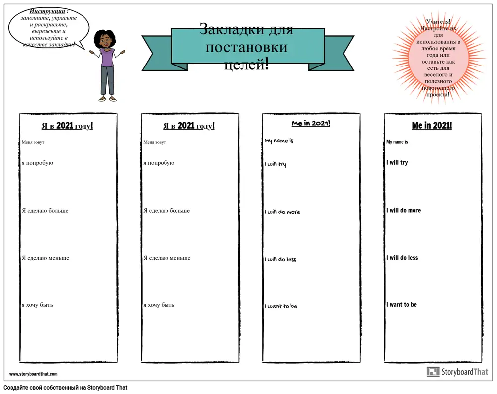 Для Нью-Йорка или для постановки общих целей. Инструкции: заполните, украсьте и раскрасьте, вырежьте и используйте в качестве закладки!