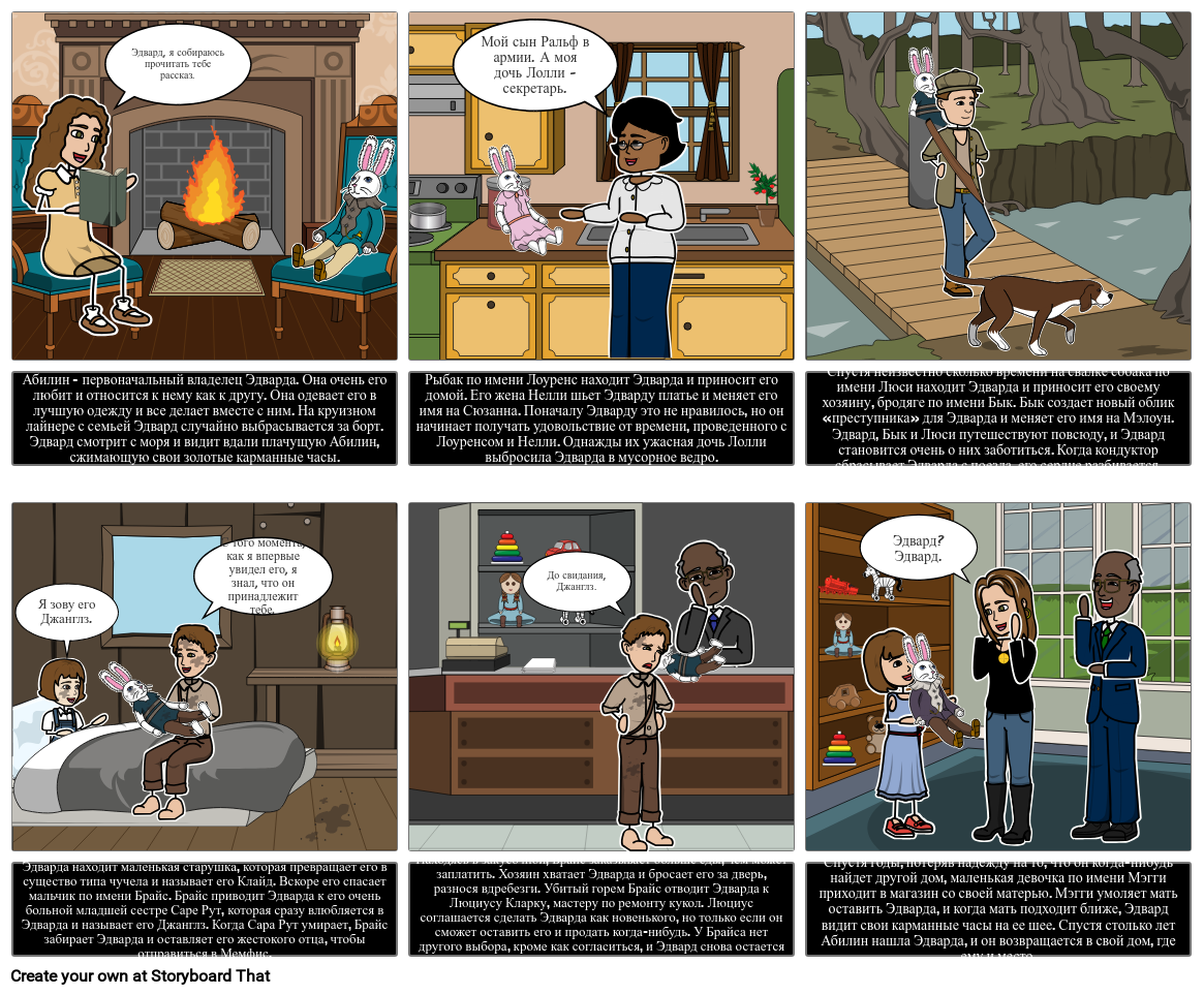 Рыбак по имени Лоуренс находит Эдварда и приносит его домой. Его жена Нелли шьет Эдварду платье и меняет его имя на Сюзанна. Поначалу Эдварду это не нравилось, но он начинает получать удовольствие от времени, проведенного с Лоуренсом и Нелли. Однажды их ужасная дочь Лолли выбросила Эдварда в мусорное ведро.