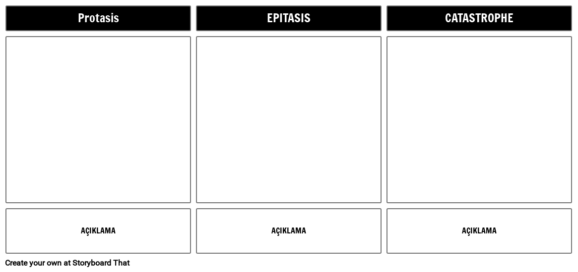 3 Yasası Yapısı Şablonu | Öğrencilere oyunun protasisini, epitazını ve felaketini tanımlamalarını ve bunları Storyboard That That'ı kullanarak açıklamalarını sağlayın.