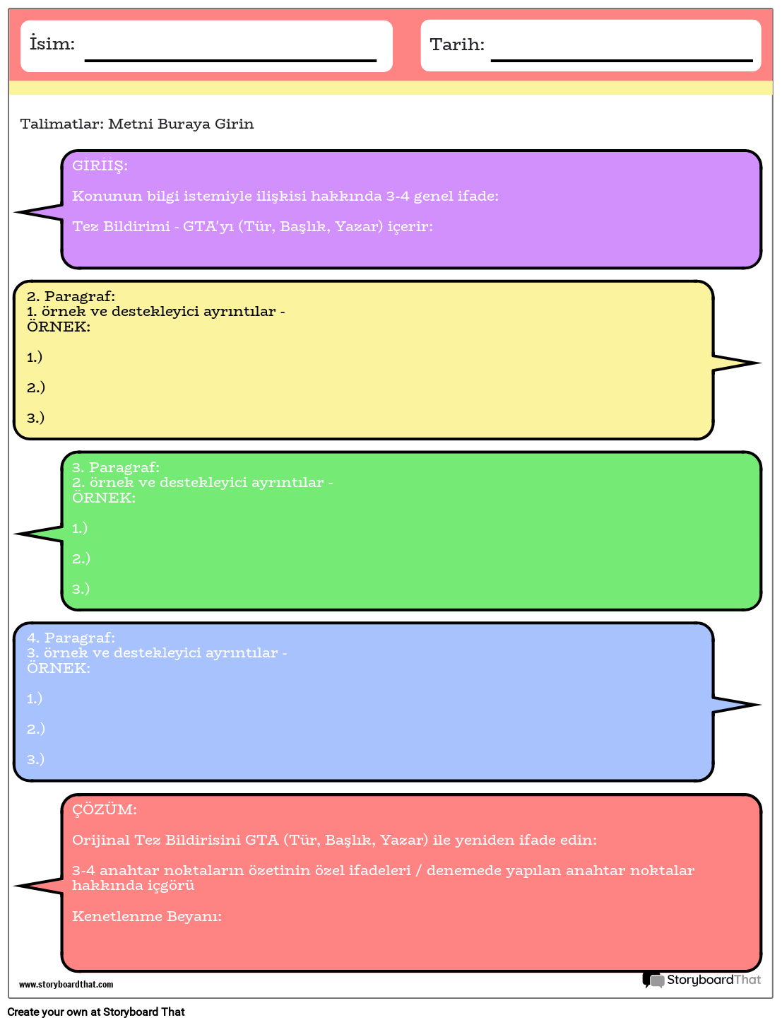 Giriş, destekleyici paragraflar ve sonuç bölümleri içeren uzun kompozisyon veya 5 paragraflık deneme şablonu. Her bölüm, her paragrafta nelerin yer aldığı hakkında bilgi içerir. Renkli tema.